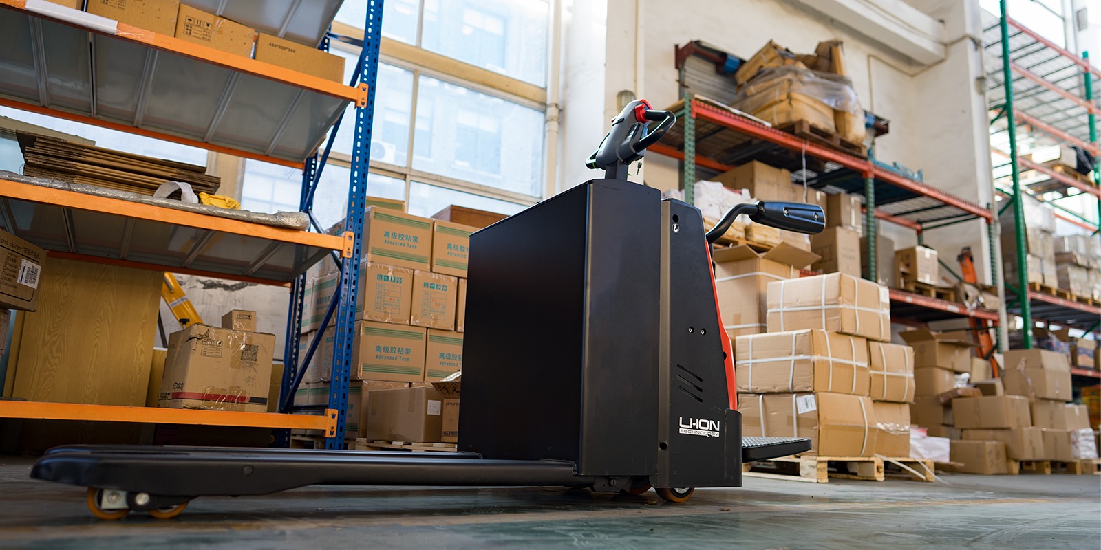 - Transpaleta de gran resistencia con plataforma plegable y brazos de seguridad